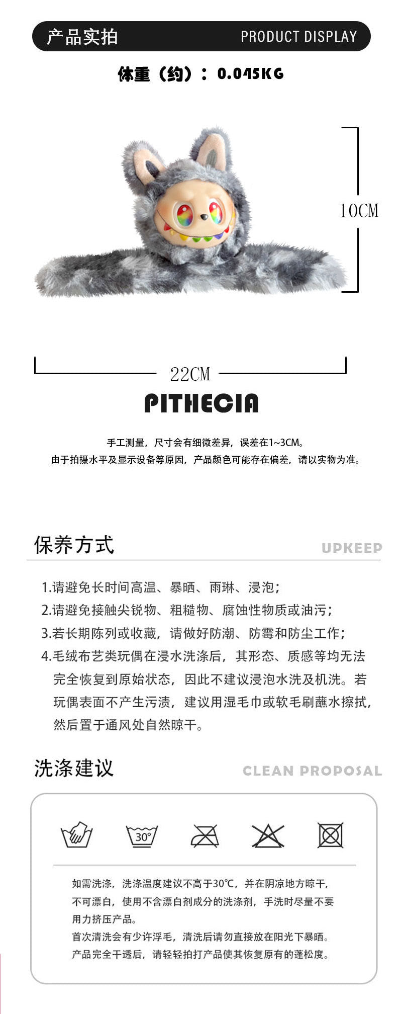 New Cute Labubu Snap Ring Bracelet Plush Toy Doll Children's Birthday Gift Plushie